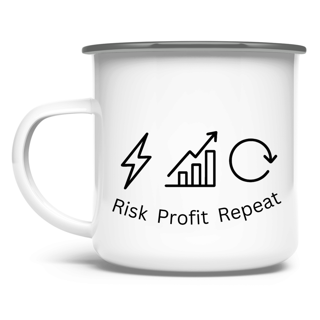 Emaille Tasse Risk Profit Repeat